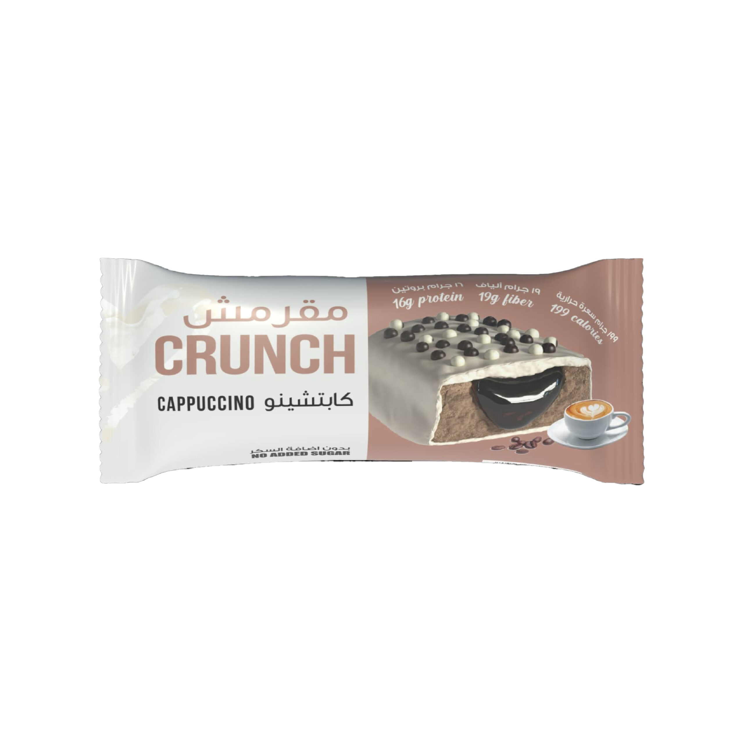 CRUNCH Cappuccino Protein Bar من بابا بروتين هو بروتين بار لذيذ بطعم الكابتشينو الغني، مثالي لكل اللي عايز سناك سريع عالي البروتين يساعد على دعم العضلات ويكمل احتياجك اليومي من البروتين، مع طعم قهوة مميز ومنعش.